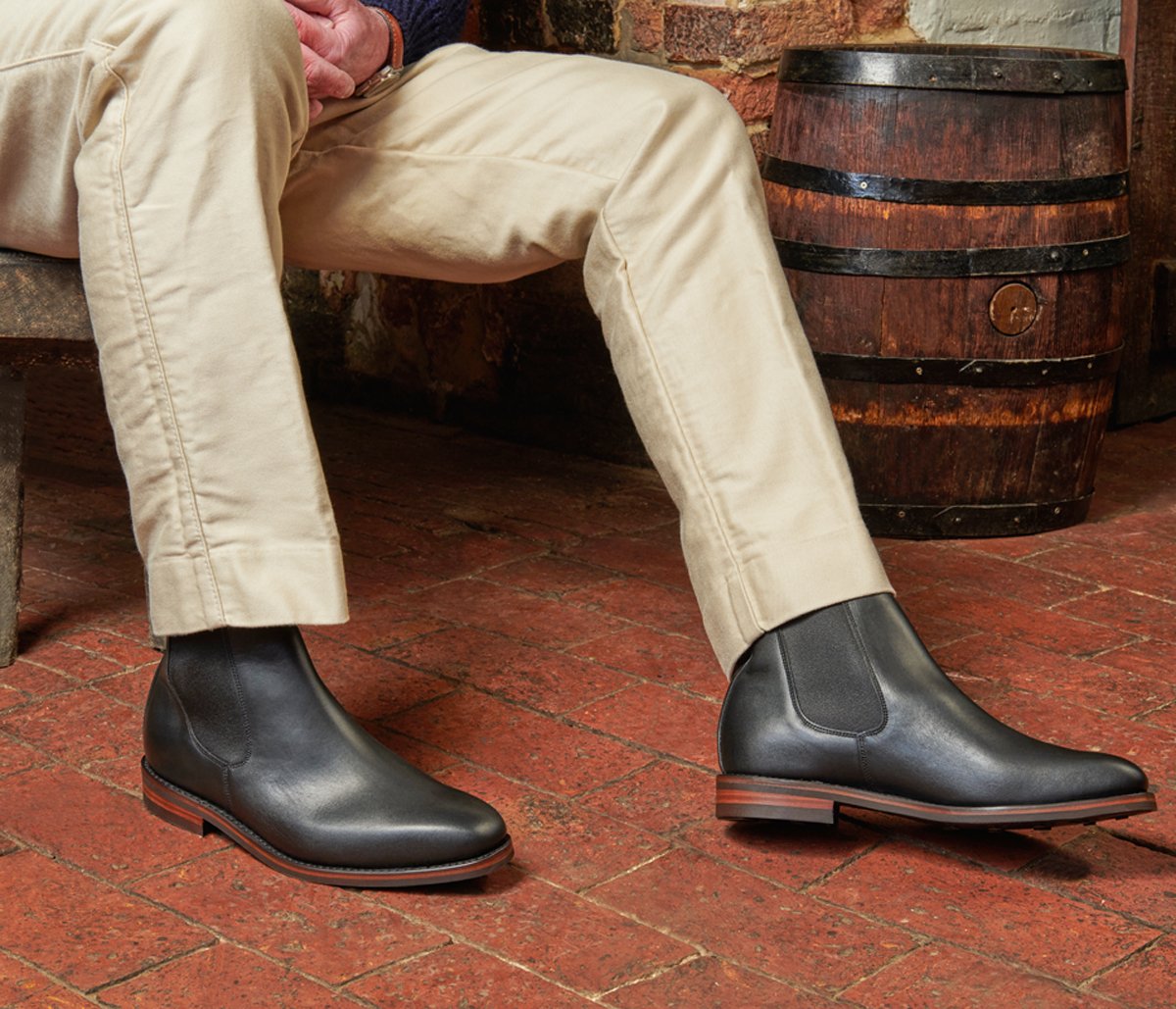 De Winter Arundel in Black Waxed Calf with tan through sole
