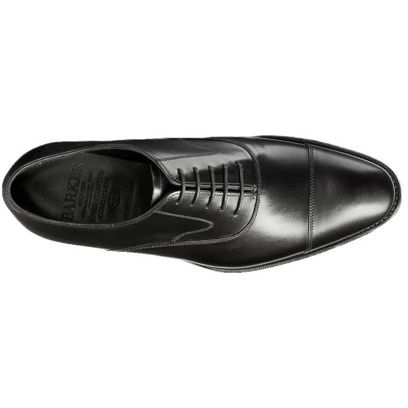 This Barker Falsgrave in black calf is a refined Oxford style with leather soles – an ideal business shoe or a luxurious option for a special occasion. Made on the 464 last that offers an extra wide G fitting.  Take a look at the sole for a unique Barker feature.