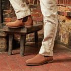 This version of our De Winter Arundel Chelsea boot has a snuff suede upper which has been steeped in oils and waxes to provide enhanced waterproofing. The suede will therefore have slight variations in its finish, giving it a weathered appearance. The boot is a regular F fitting and is available in half sizes.