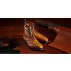 This version of the De Winter Belvoir boot has a fine acorn calf leather upper. The boot is made entirely in England but the calf leather is sourced from the Annonay tannery in France which produces a quite exceptional quality of leather.
