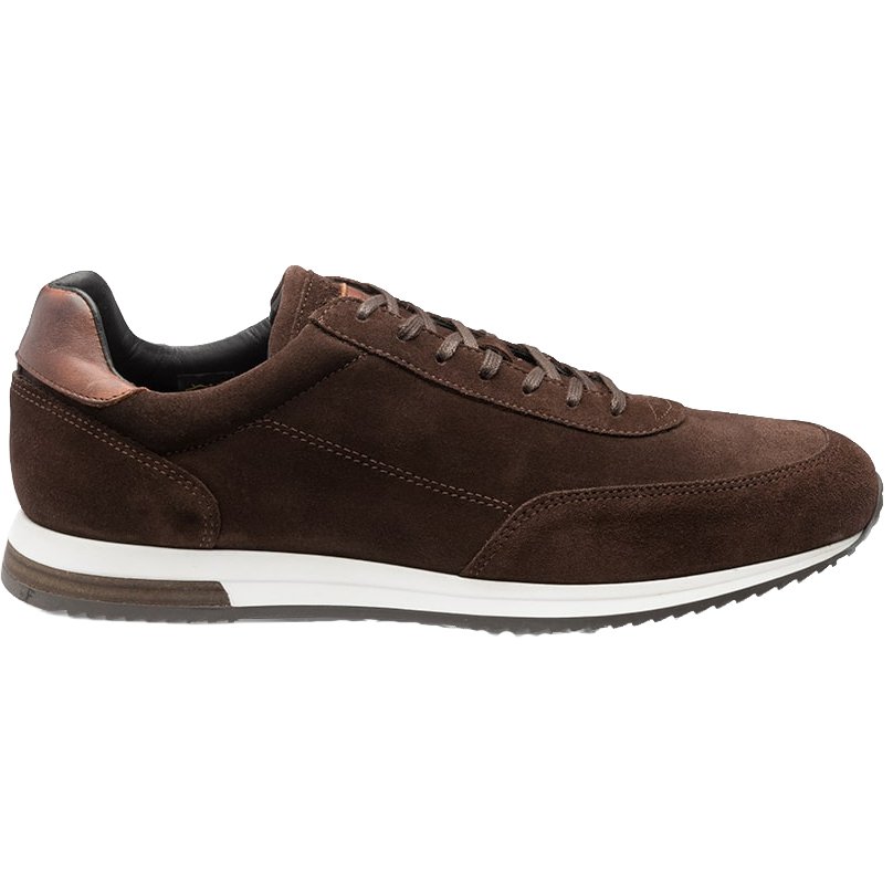 The Loake Bannister trainer has a versatile and durable cemented rubber sole. The shoe is fully leather lined and is a regular F fitting. This version has a chocolate brown suede upper.