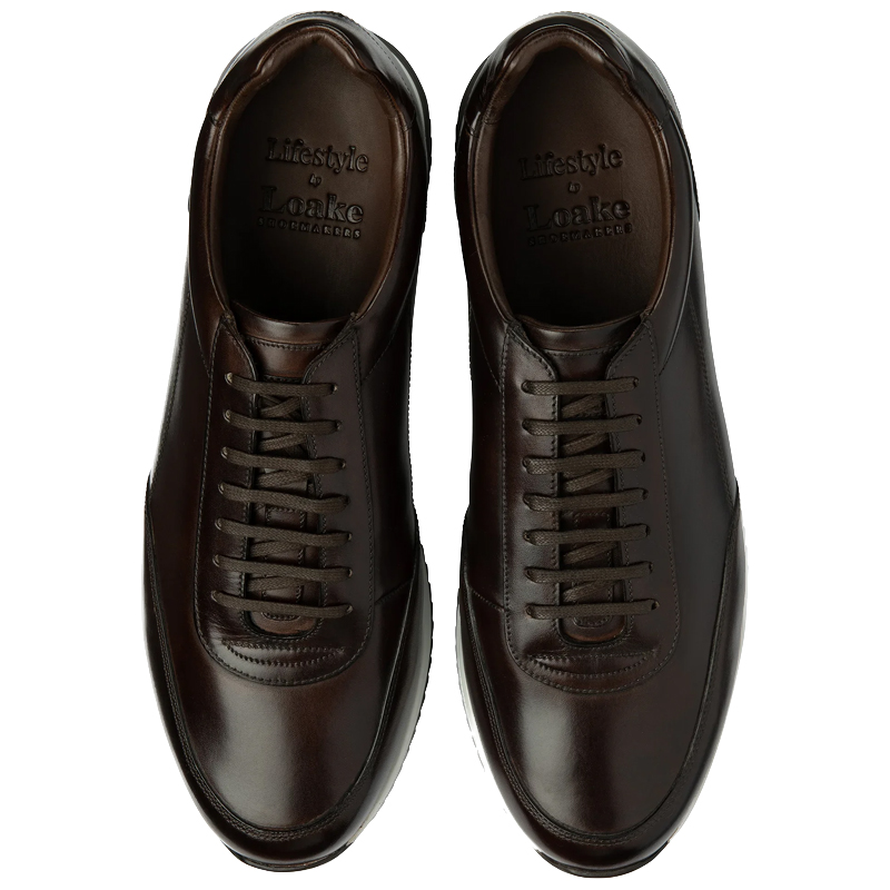These Loake Bannister trainer shoes have a dark brown burnished calf leather upper. The shoe is true to size as is made on the Trainer, F fitting, last. Leather lined throughout.