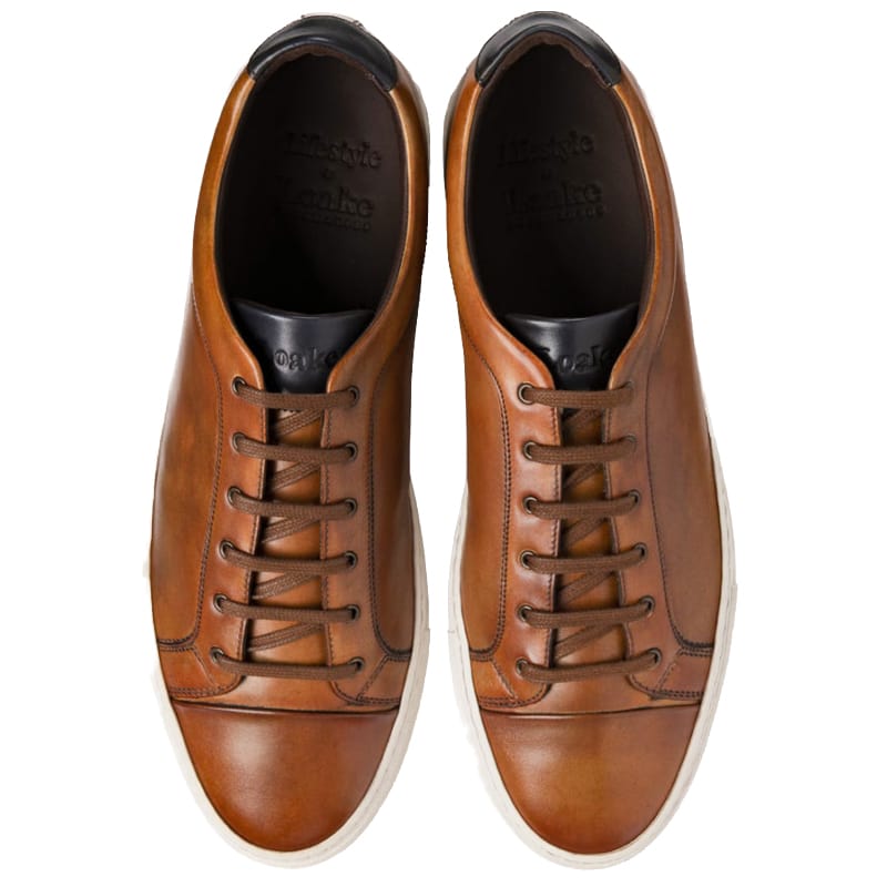 This Loake dash is a premium hand painted chestnut calf leather sneaker. Made on the Sneaker last offers a classic sneaker profile the Dash has side-stitch cup rubber soles and is available in an F fitting.