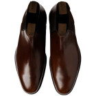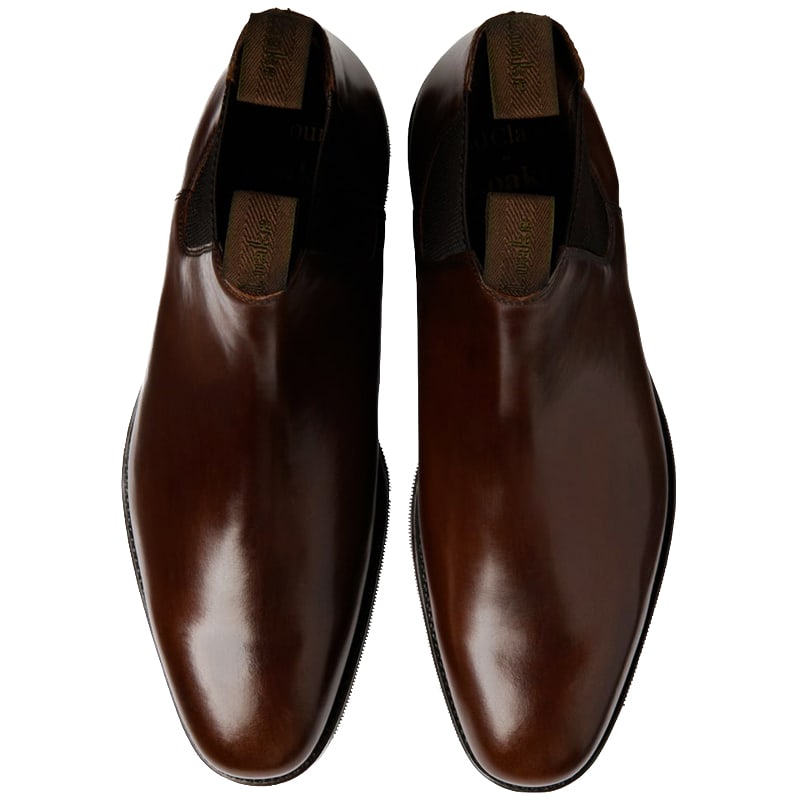 This Loake Emsworth chelsea boot has a dark brown calf leather upper. Goodyear welted onto rubber soles. Made on Loake’s popular Capital last which offers a slightly chilsed toe shape and a medium width F fitting.