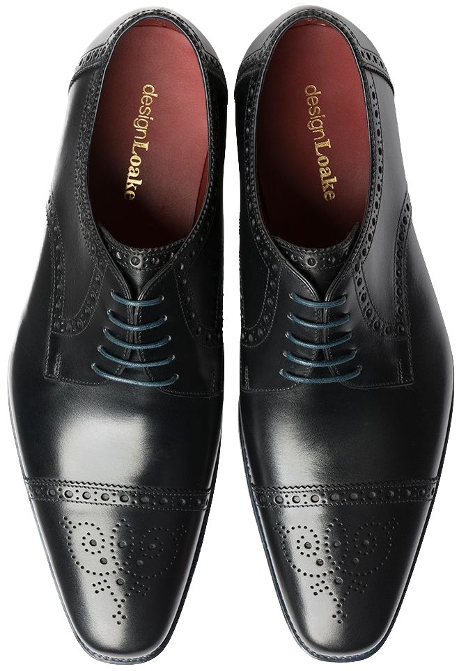 This elongated toe derby half brogue has a stylish blue leather welt and blue cotton laces. Made on Loake’s fashionable Foley last.