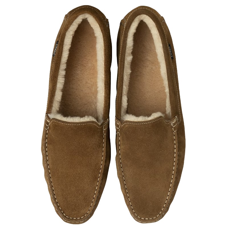 This Loake Guard in tan suede is a premium Moccasin style leather slipper, featuring warm shearling fur linings and comfort memory foam insoles. The Guard uses the Slipper last shape for a generous fit and is available in a F fitting.