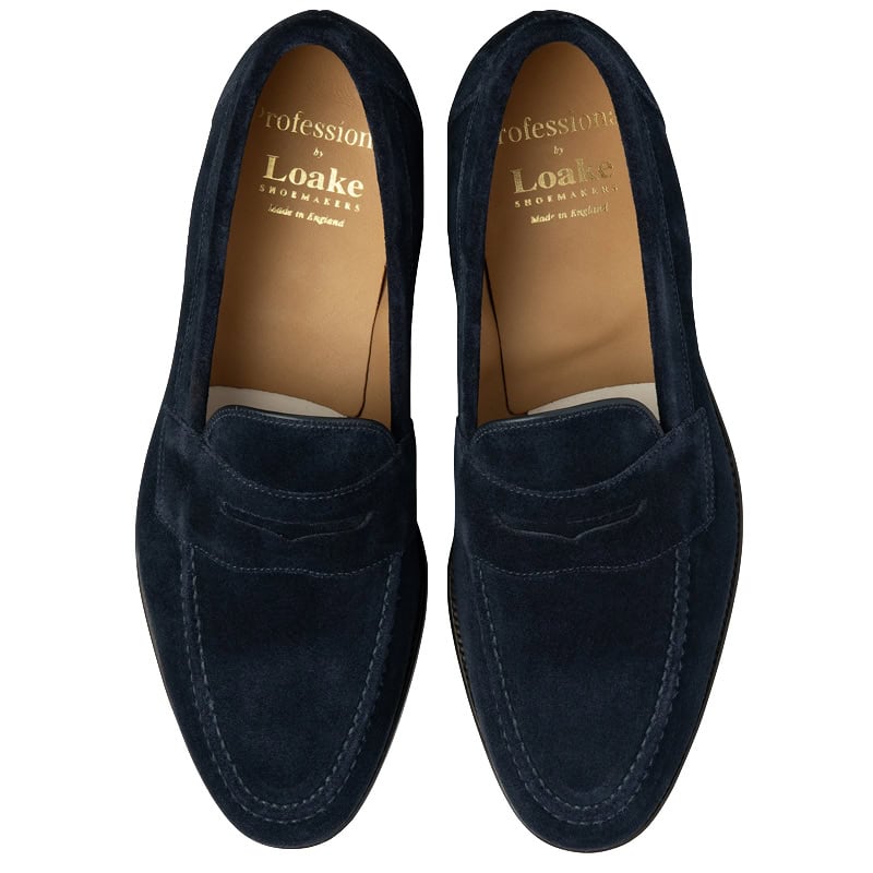Another new addition to the Imperial family. This Loake Imperial has a navy suede leather upper, made on the College last that offers a medium width F fitting. This shoe is true to size but is a snug fit as befits a loafer.
