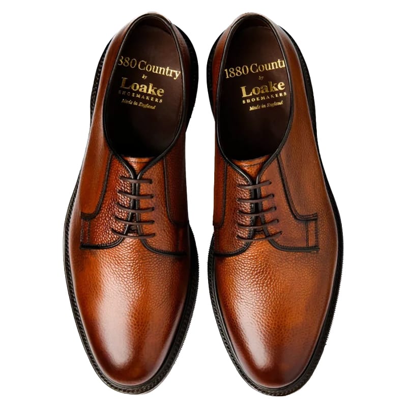 The Loake Leyburn derby shoe in mahogany grain is Goodyear welted onto rubber soles. Made on Loake’s Minster last that offers a rounded toe and a standard width F fitting.