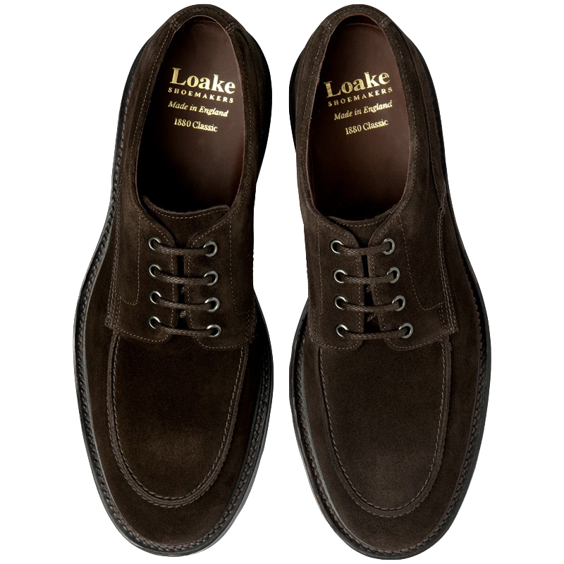 This Loake Mowbury Derby shoes has a dark brown suede upper. Featuring Goodyear welted rubber soles for greater longevity and grip. The Mowbury uses the Loake’s Castle last shape that offers a contemporary silhouette and designed with a refined round toe for a modern yet timeless appeal. The Mowbury is available in a medium width F fit.
