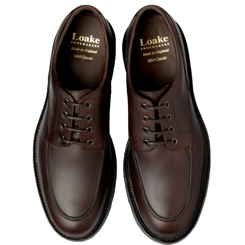This Loake Mowbury Derby shoes has a dark brown waxy leather upper. Featuring Goodyear welted rubber soles for greater longevity and grip. The Mowbury uses the Loake’s Castle last shape that offers a contemporary silhouette and designed with a refined round toe for a modern yet timeless appeal. The Mowbury is available in a medium width F fit.