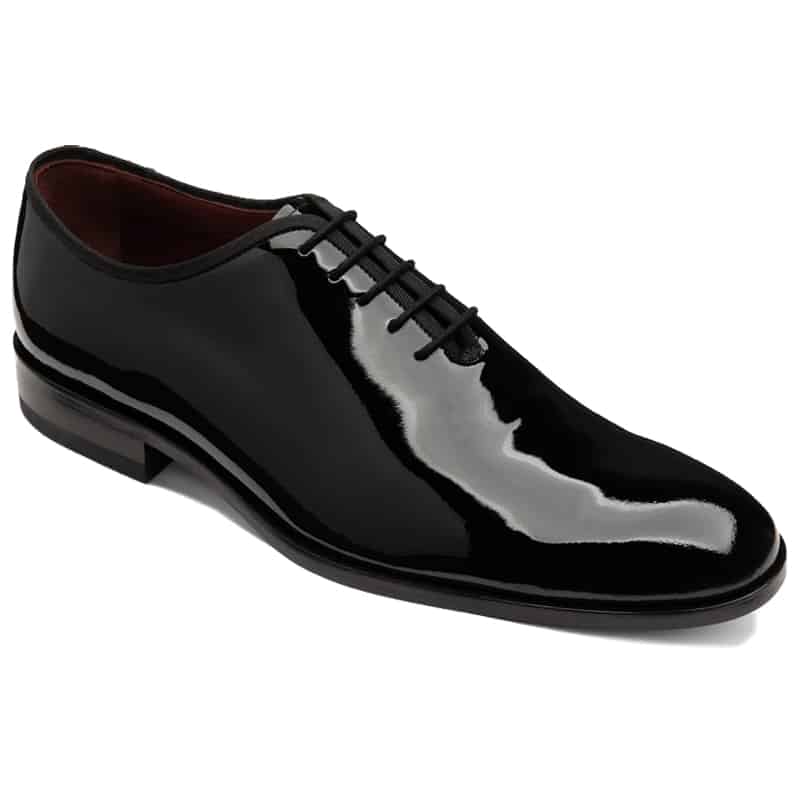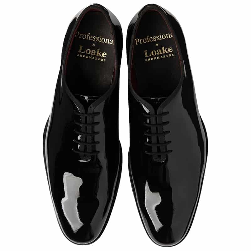 This Loake Regal is a wholecut plaint tie shoe with a black patent leather upper and cemented leather and rubber soles for greater quality. Made on the Claridge last that offers a medium wide F fitting and a slightly rounded toe point. The regal runs true to size.