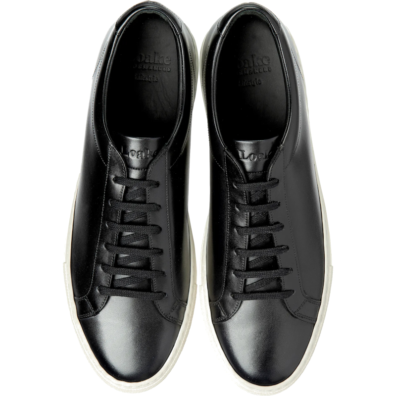 The Loake Sprint has a classic sneaker profile. This version has a black calf leather upper. These sneakers are fully leather lined and are true to English sizing.