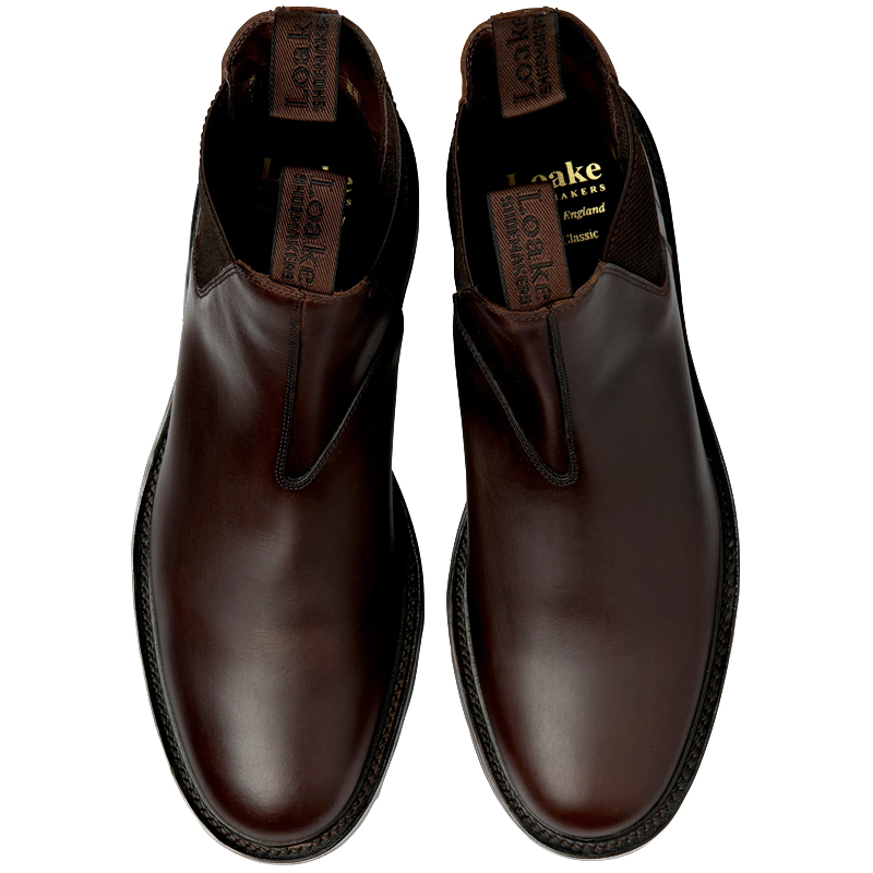 This Loake Tintagel is a premium dark brown waxy leather Chelsea boot with Goodyear welted rubber soles for durability and grip. Built on the Castle last, it offers a comfortable F fitting and works well for both smart and casual wear. Handmade in England, it combines rugged leather with refined craftsmanship.
