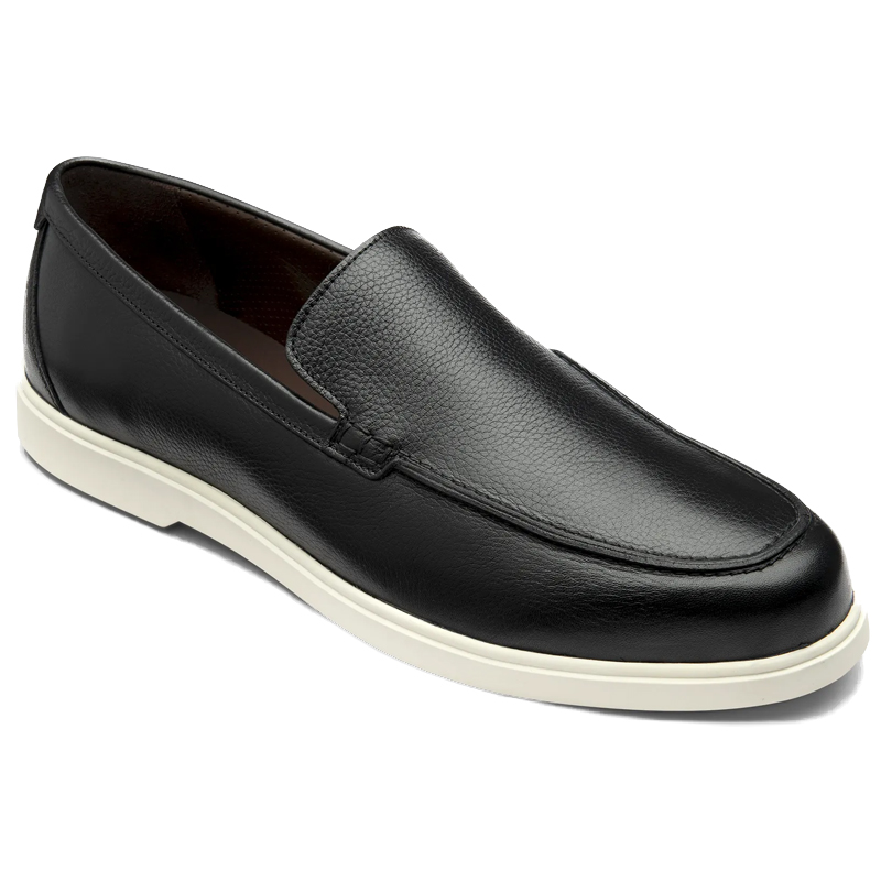 This Loake Tuscany features a black grain leather upper and cemented white rubber soles. Made on the Tuscan last that offers a casual rounded toe shape and an F fit. The Tuscan is a great option for a smart causal look during the warmer months.