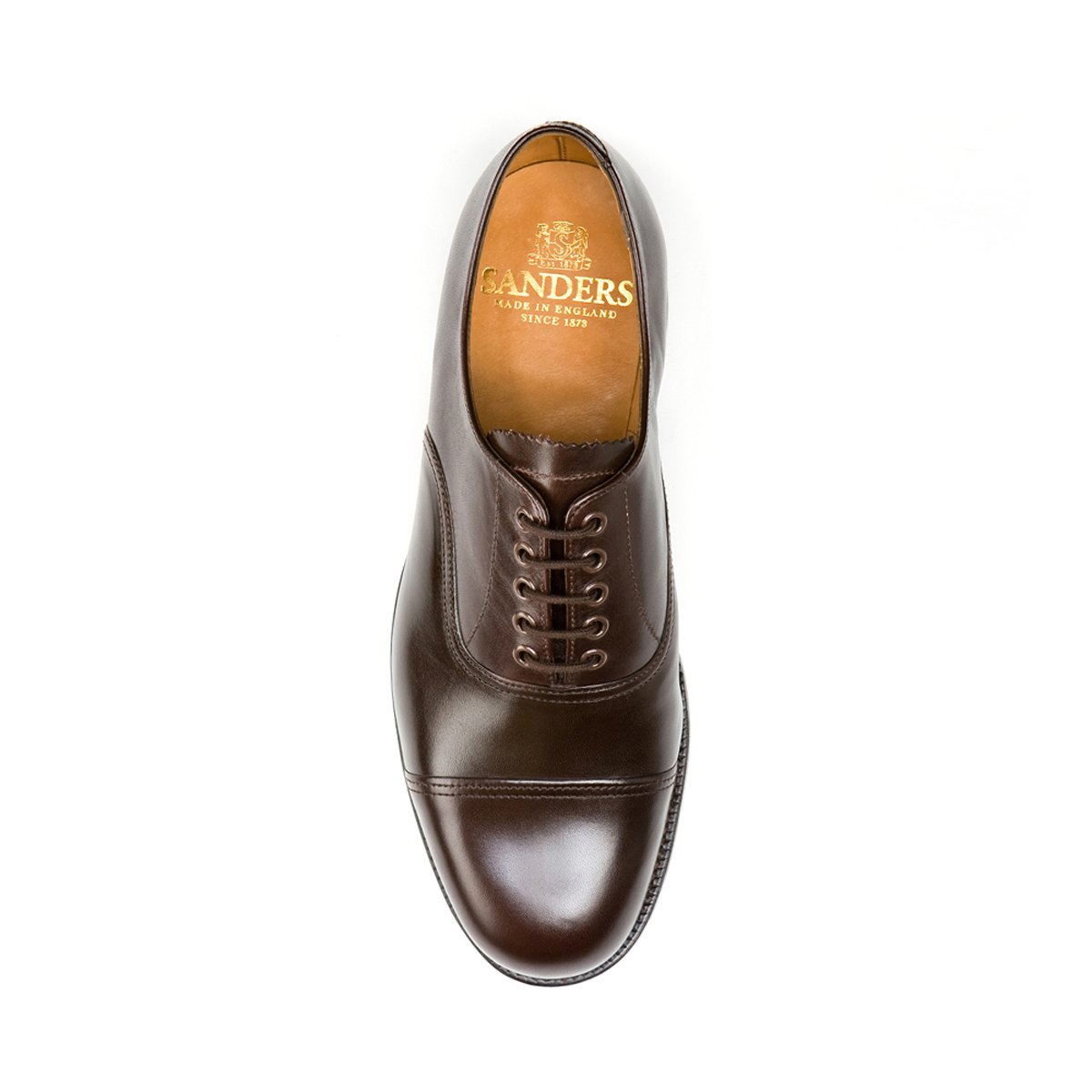 This Sanders dark brown Camberley toe cap Oxford is made on the M265L last. Fully leather lined military shoes with Goodyear welted leather soles. The Camberley is true to English sizing and an F fitting.