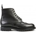 Sanders Cheltenham 8317B from the Regent Collection. Black Waxy Leather Upper. Brogue Derby 7 Eyelet Boot. Fully Leather Lined with Leather Insoles. Goodyear Welted Commando Rubber Soles + Heels with Storm Welt.