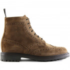 This sturdy 7 eyelet Sanders Cheltenham brogue boot has a snuff waxed suede upper Goodyear welted to commando rubber soles. Style no. 8317SWS