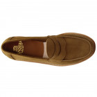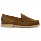 The Sanders Edwin penny loafer is rather unique with it’s natural crepe welted soles. This version has an tobacco suede upper. Fully leather lined. Style reference 2115TTS.