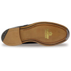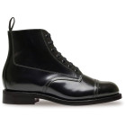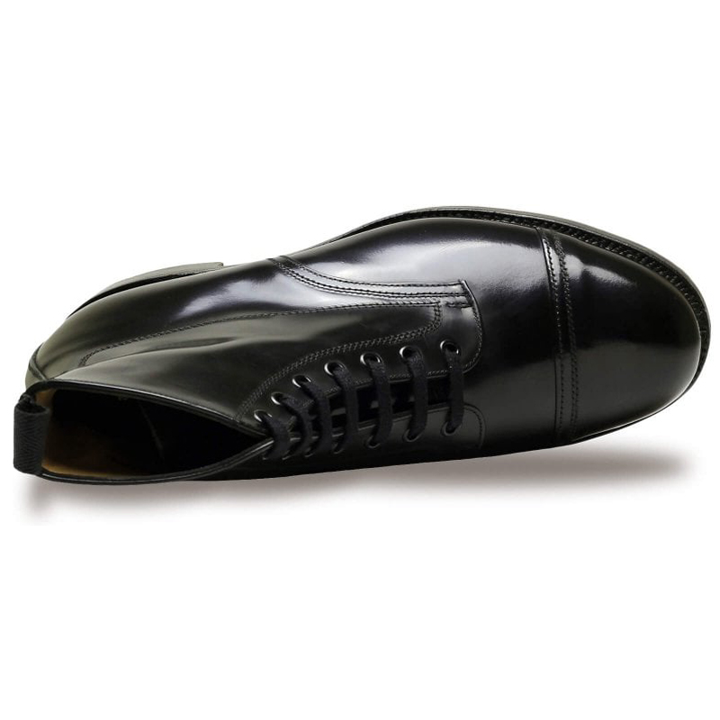 This Sanders Exmouth Derby parade boot has a black polished leather upper. Quarter leather lined with a linen vamp lining. Goodyear welted onto leather soles with a steel toe tip. Made on Sander’s 1741 last that offers a medium width F fitting.