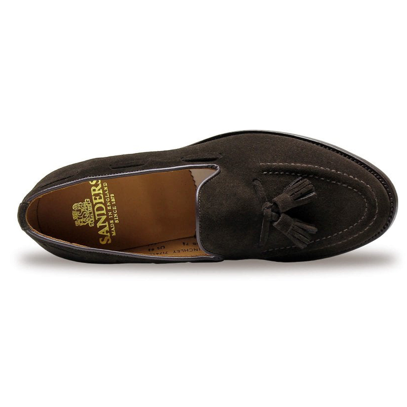 The Sanders Finchley is made on the elegant James last. This traditional tassel loafer has a premium grade dark brown pinner suede upper. Fully leather lined with a substantial leather insole.