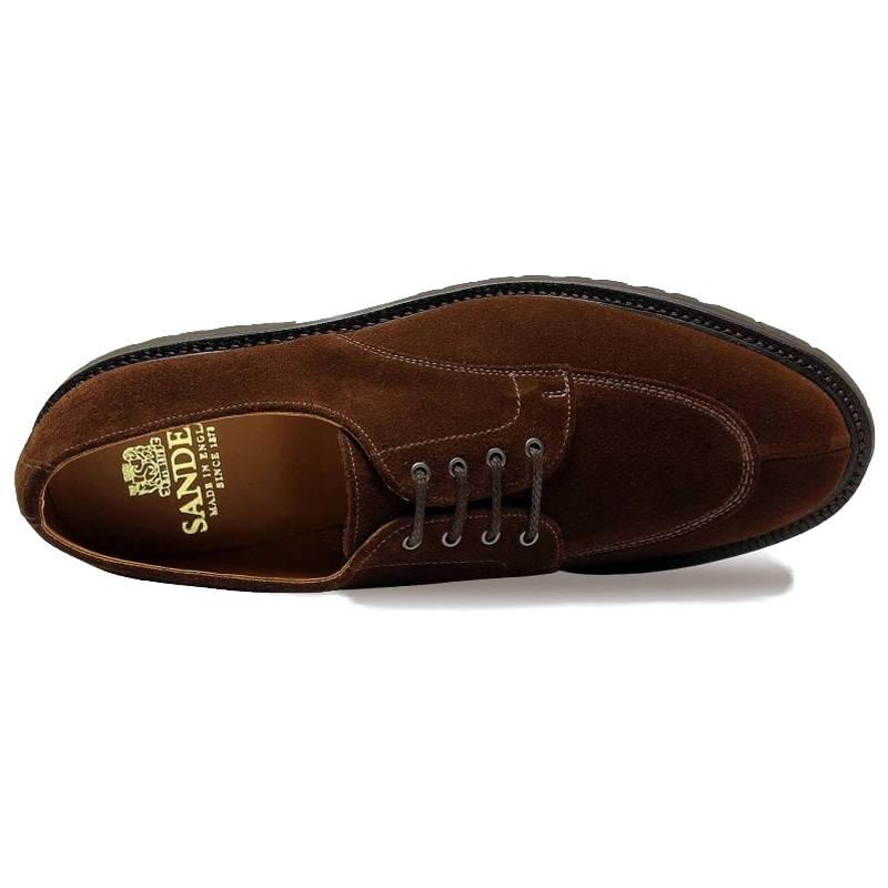 This Sanders Jonah apron derby shoe has a beautiful polo snuff suede leather upper and an additional stylish split toe. Goodyear welted on Vibram V-lite rubber soles and made on the Ash last that offers a medium width F fitting.