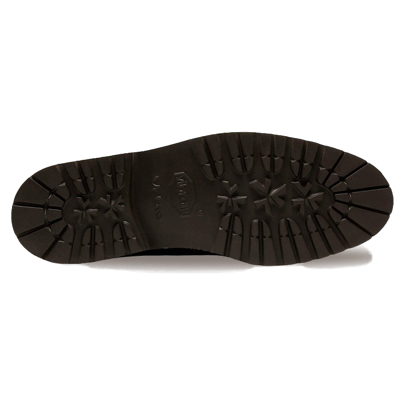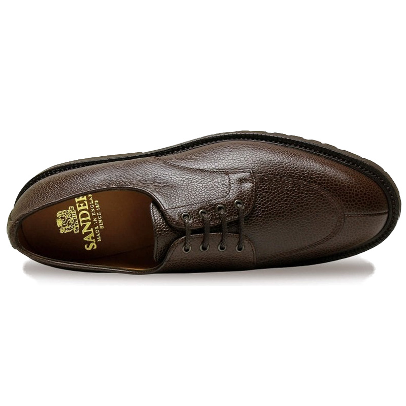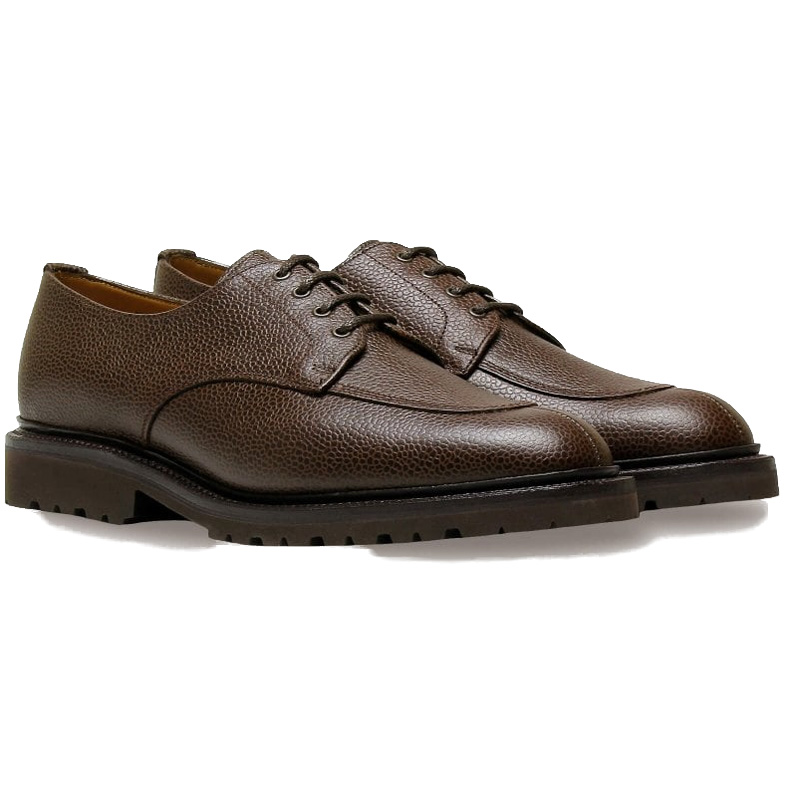 This Sanders Jonah apron derby shoe has a beautiful walnut grain leather upper and an additional stylish split toe. The split toe design isn’t just for aesthetics! Originating from a clever solution to keep feet dry, the seam is positioned higher on the vamp, offering a more water-resistant construction. Perfect for all-day wear, come rain or shine. Goodyear welted on Vibram V-lite lightweight rubber soles and made on the Ash last that offers a medium width F fitting.