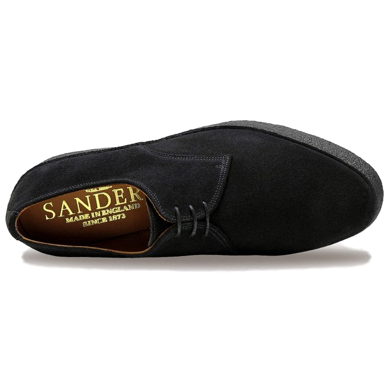 Sanders LoTop 7995BS Plain Derby in Black Suede from Sanders’ Casual Collection. Full Leather Lining and Leather Insoles. Plantation Crepe Rubber Soles. Made on Sander’s Joel last in their Rushden factory in Northamptonshire.