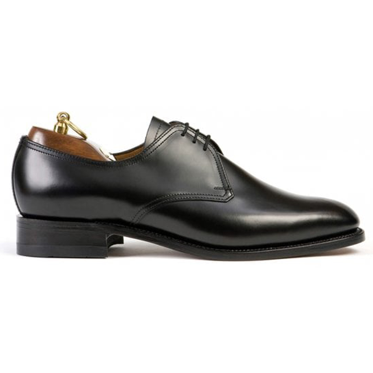 This Sanders Moffat plain Gibson has a black leather upper. Goodyear welted leather soles and a quarter leather lining. Made on the 8M136R that offers an extra wide H fitting.