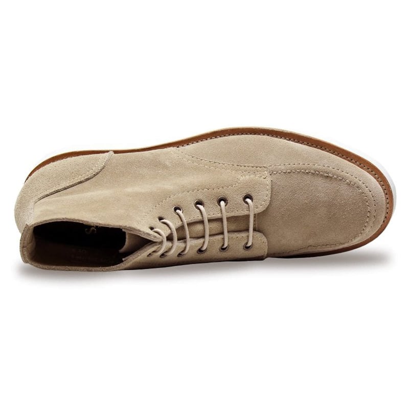 This Sanders Wilson apron derby boot has a milshake suede upper and has leather lined vamps with unlined quaters. Made on the M265M last this Wilson has sand Vibram Morflex rubber soles.