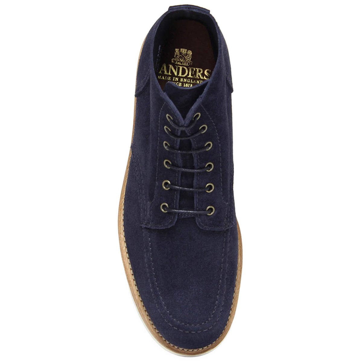 This Sanders Wilson apron derby boot has an ocean suede upper and is fully leather lined. Made on the M265M last this Wilson has white Vibram Morflex rubber soles.