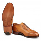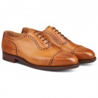 This Tricker’s classic toecap Oxford brogue shoe has long led the way in stylish city footwear. In 1001 burnished, with blind eyelets for even greater refinement. Leather uppers and linings and stitched and channelled leather sole. Made on the 4537 last.