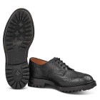 This Tricker’s Ilkley is a heavy derby country brogue. Stylish with a touch of rugged, the Ilkley has a half bellows tongue and storm welt for added weather resistant properties. The black scotch grain leather upper is tough and the commando rubber soles truly make this shoe durable yet stylish.